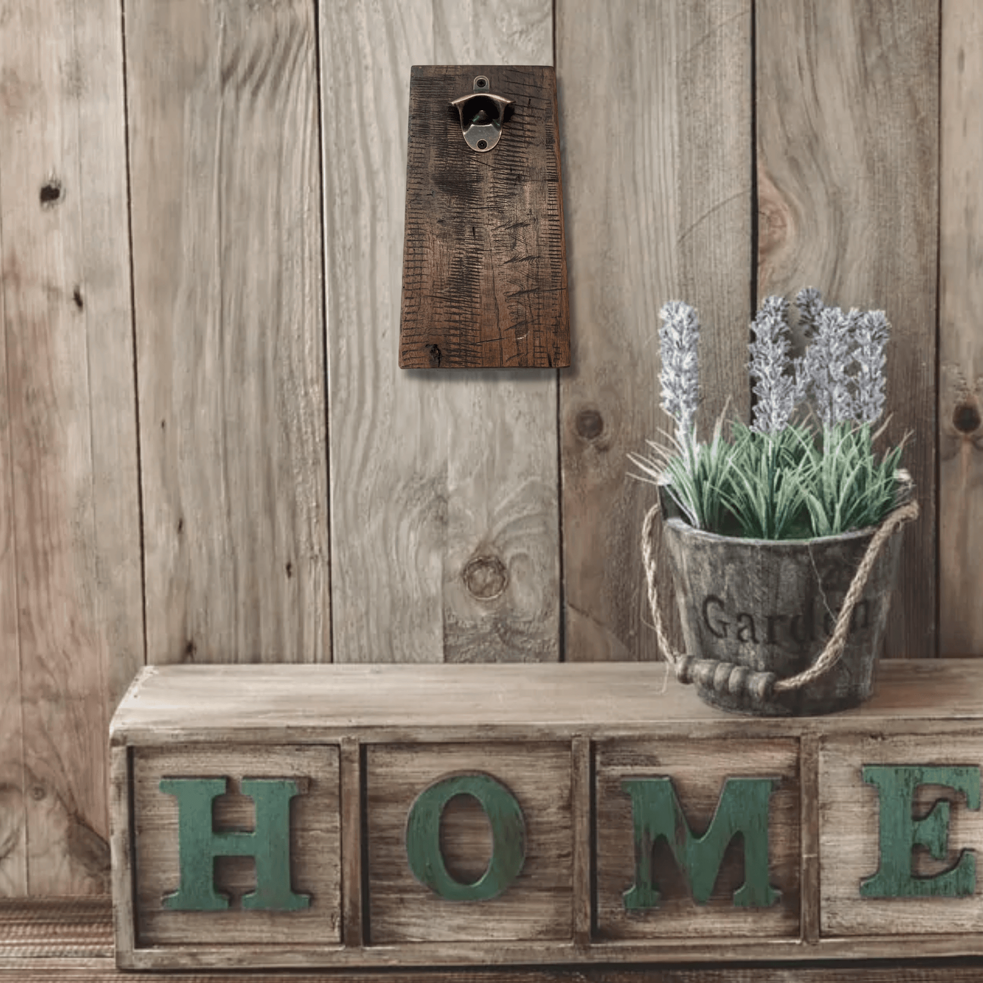 Rustic Farmhouse Bottle Opener with Oil Rubbed Bronze Hardware