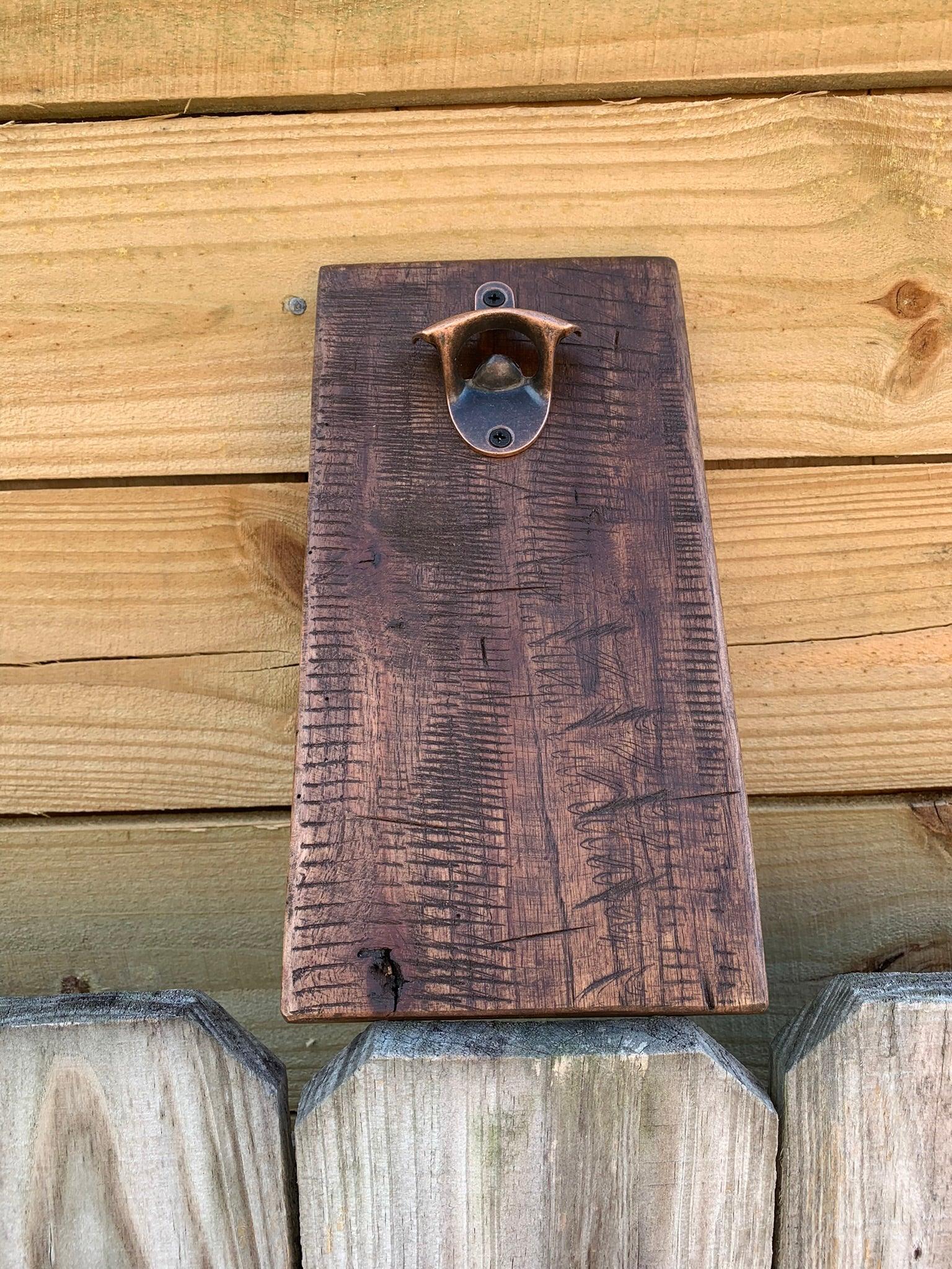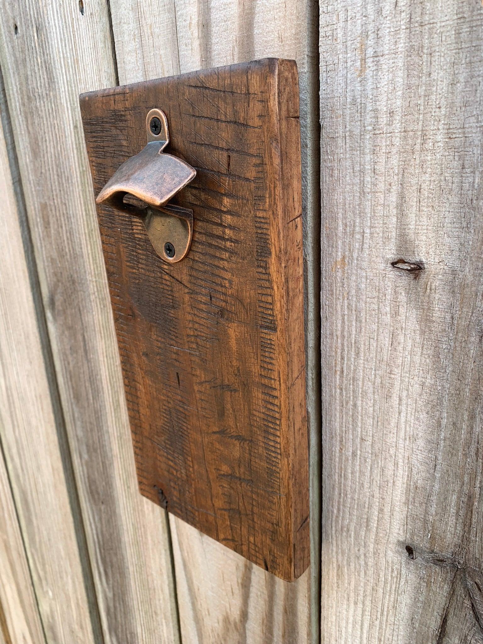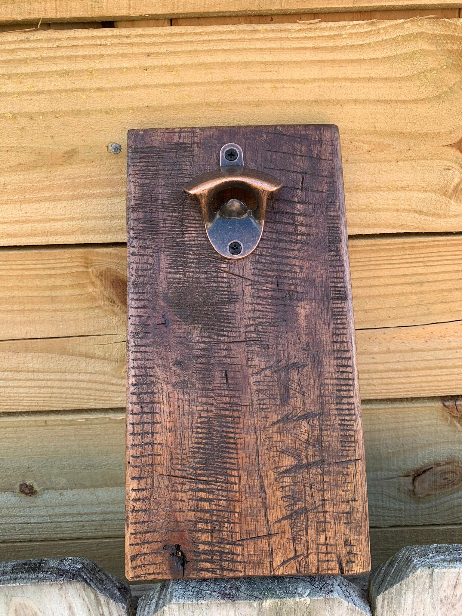 You'll love how this handsome bottle opener is handcrafted out of a thick plank of reclaimed white oak hardwood straight out of the forests of South Mississippi.